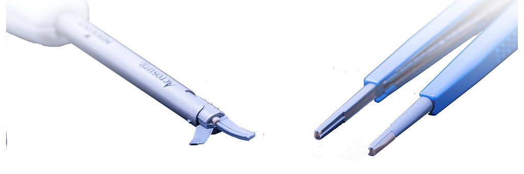 ハサミ型の「Acrosurg.」一つで、皮膚組織の切離から組織・癒着の剥離、臓器・組織の切離・止血、脈管切断・封止まで一貫して作業することができます。