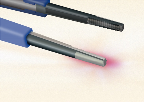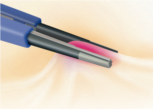 マイクロ波で水分子を振動させて加熱するため、組織の凝固時には飛沫や煙の発生が少なく、クリアな術野を保った手術が可能になり